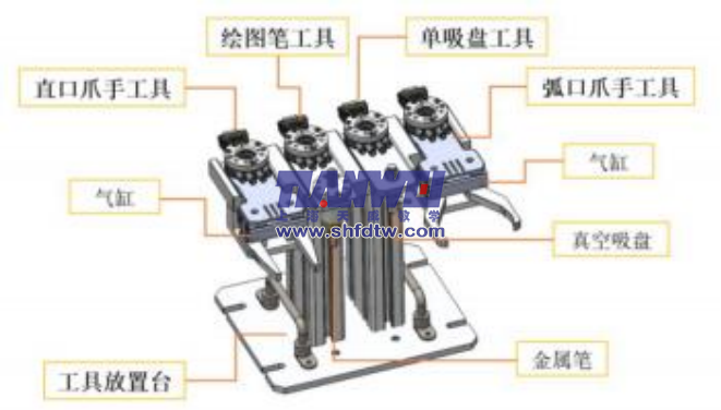 (2)包含气夹、吸盘、画笔等工装夹具;不低于4个夹具快换装置。