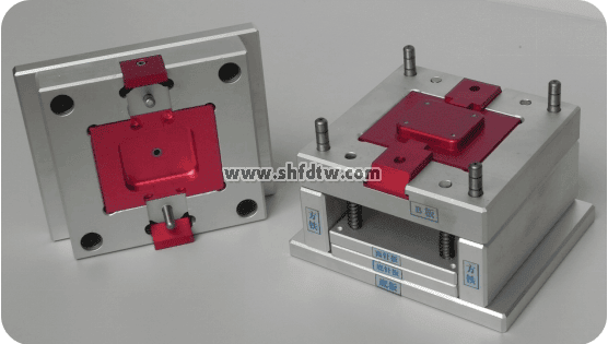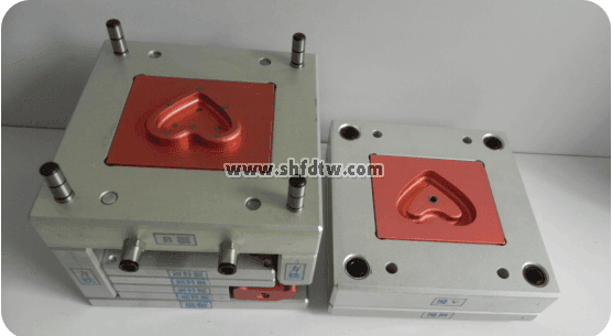 | 2 | 二次顶出模 XSCZZM -002 240×200mm | 成型深腔薄壁,侧面形状复杂,脱模力大的塑件,顶出组织先后二次顶出,结构简单,加工方便,安全可靠。成型产品为心形肥皂盒,成型尺寸为50×55×12㎜。 | 1套 |
